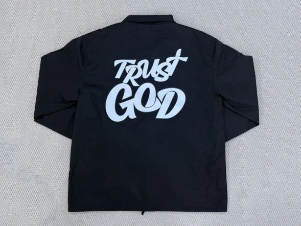 Merch › ‘Trust God’ Windbreaker Jacket Image 1 of 2 Image 2 of 2 ‘Trust God’ Windbreaker Jacket £0.00 Size: Small Medium Large XL XXL Add To Cart Added!