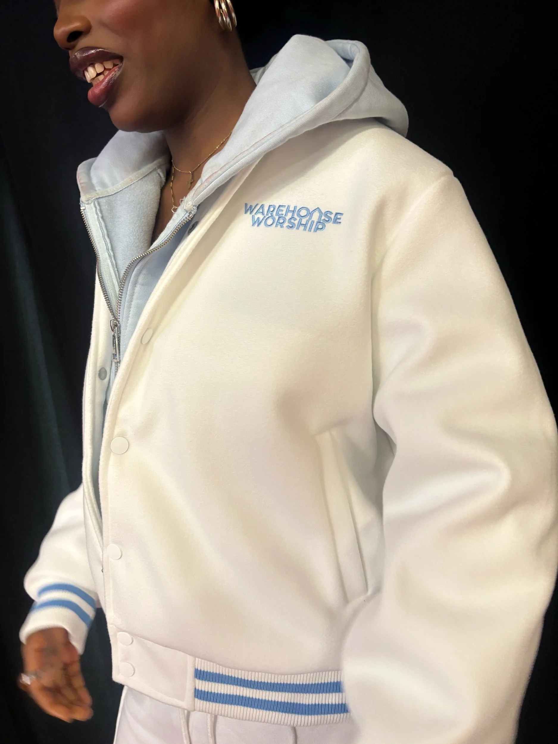 Merch › ‘King Jesus’ Bomber Jacket Image 1 of 6 Image 2 of 6 Image 3 of 6 Image 4 of 6 Image 5 of 6 Image 6 of 6 ‘King Jesus’ Bomber Jacket £75.00 High Quality Blue and White bomber jacket Size: Small Medium Large XL XXL Quantity: Add To Cart Added! High Quality Blue and White bomber jacket